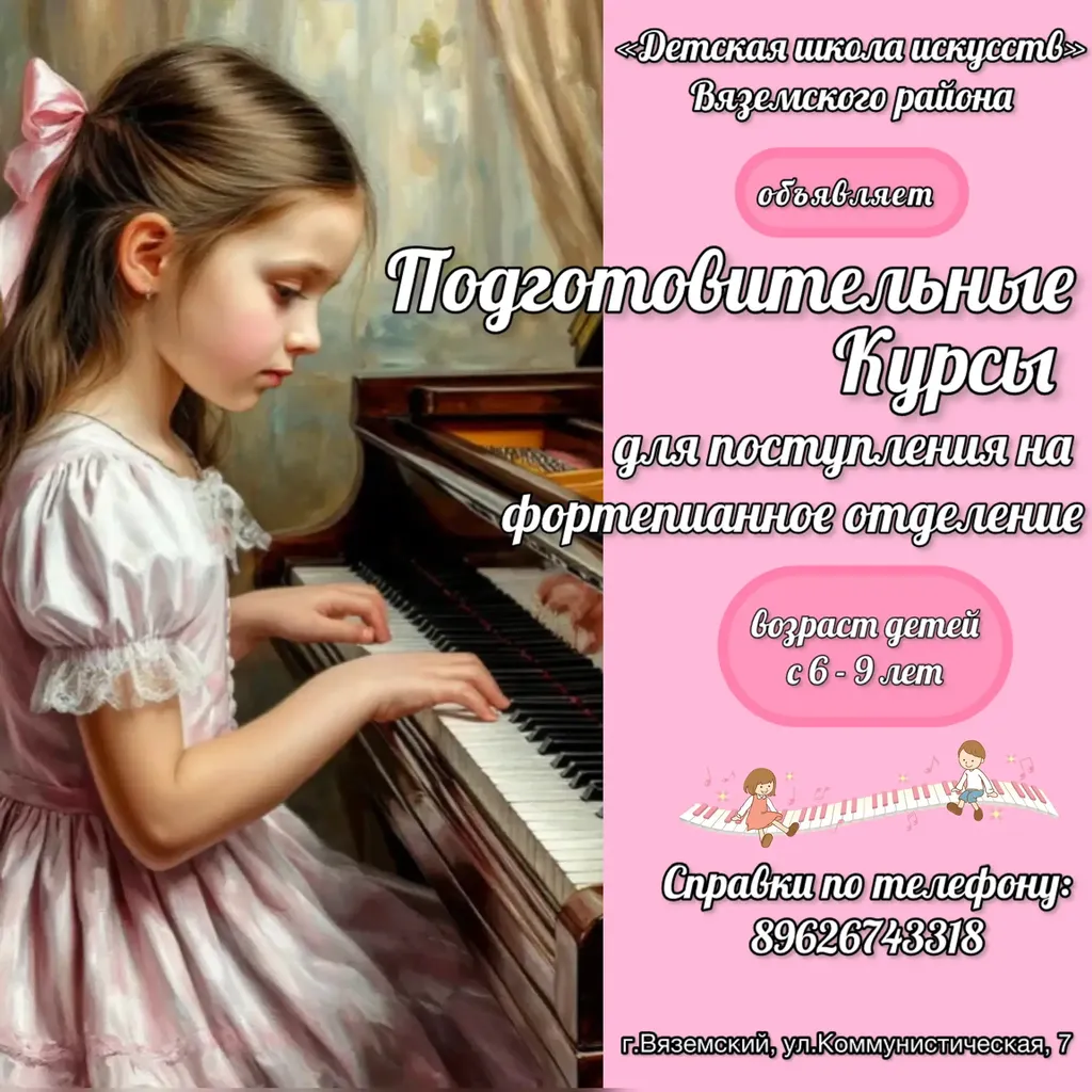 🎹Спешим сообщить, что с апреля по май в детской школе искусств будут проходить подготовительные курсы для желающих поступить на фортепианное отделение (2026–2027 учебный год) и научиться играть на прекрасном инструменте.